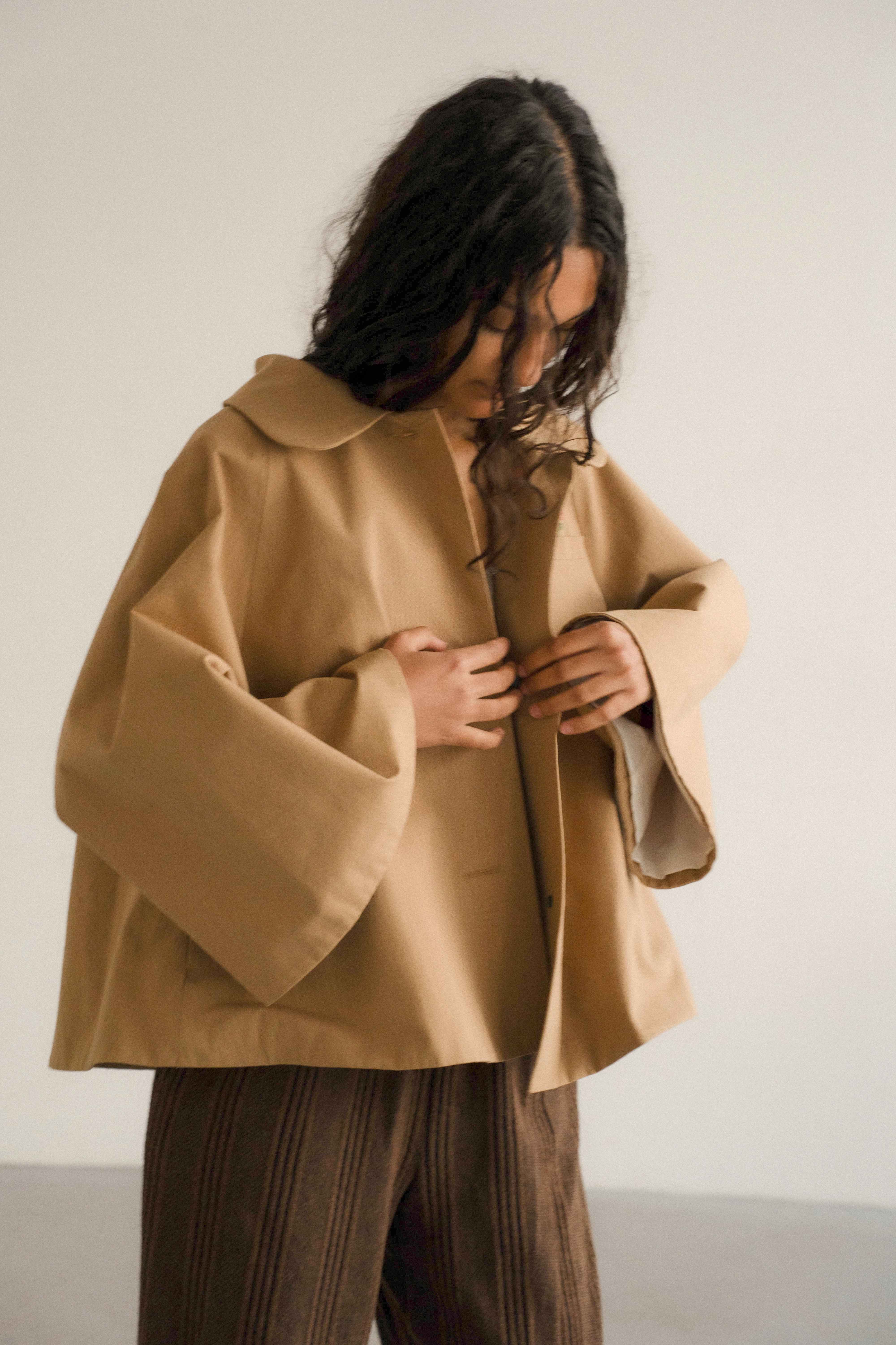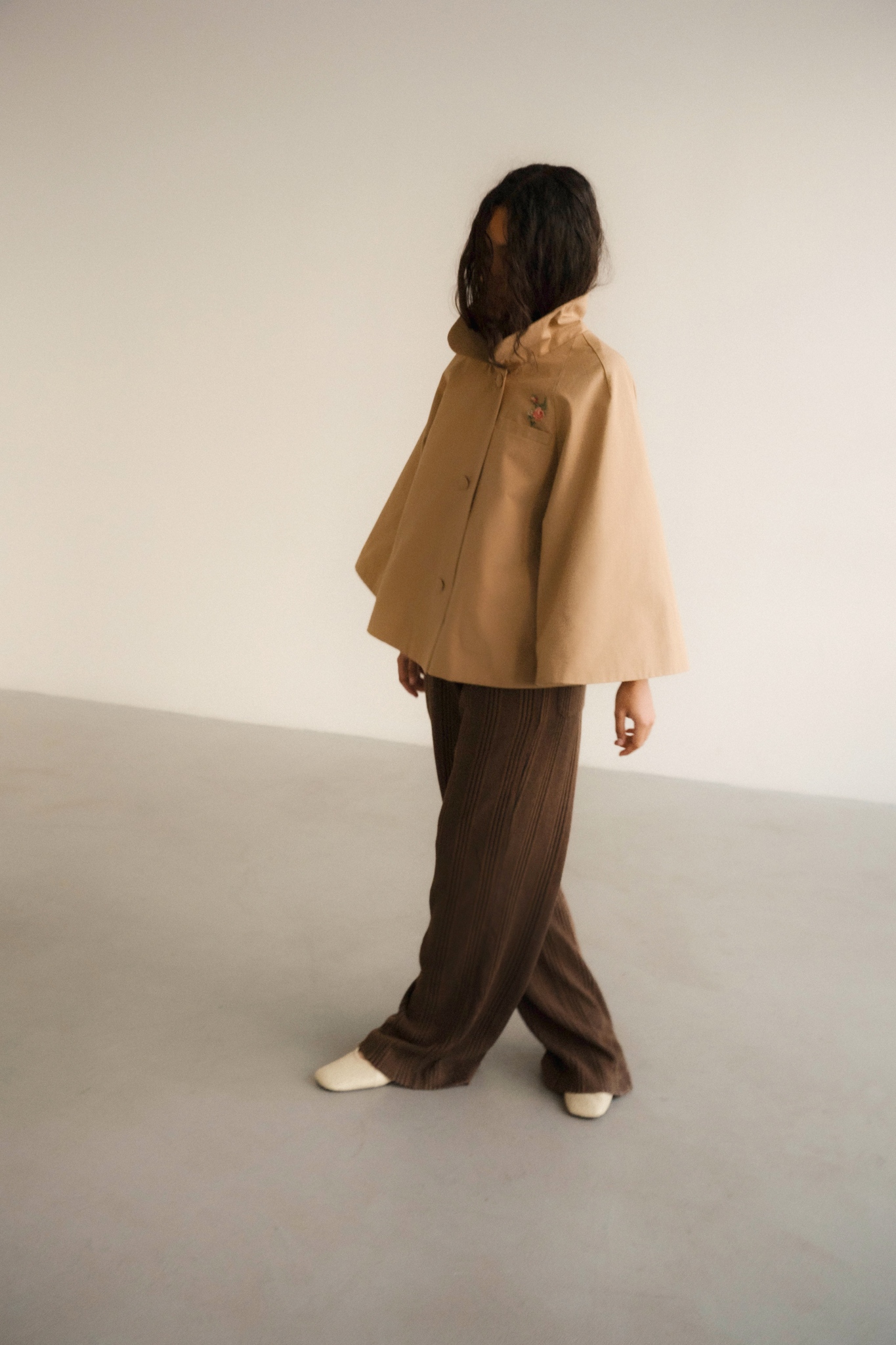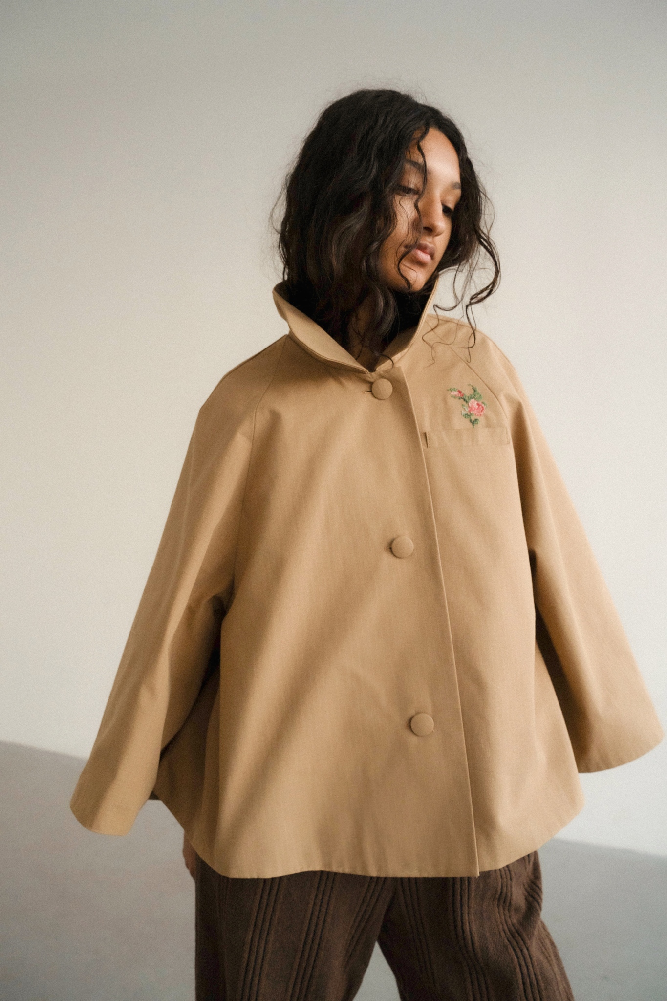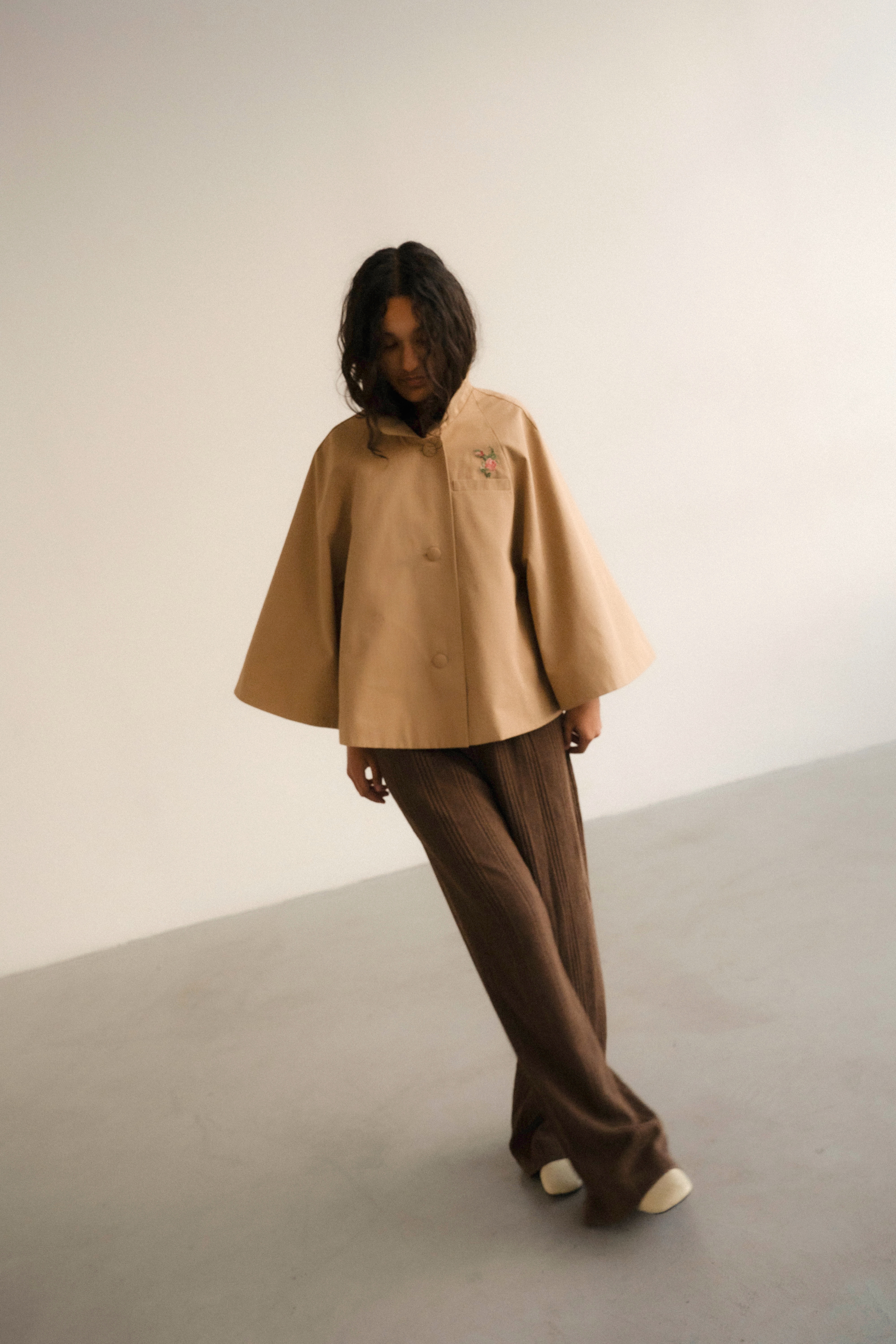 - Плащ с укороченным расклешенным рукавом свободного силуэта.