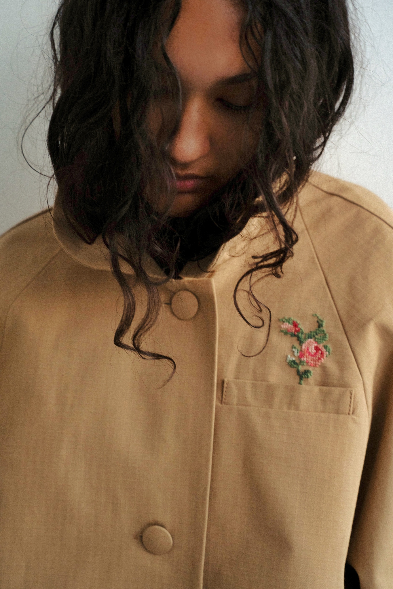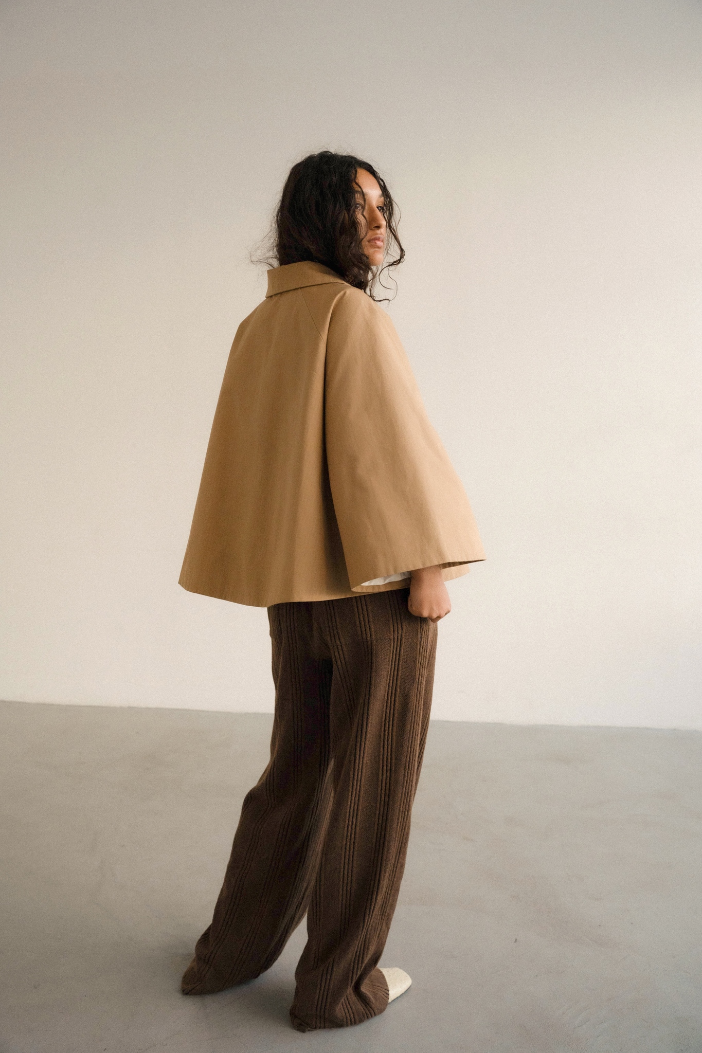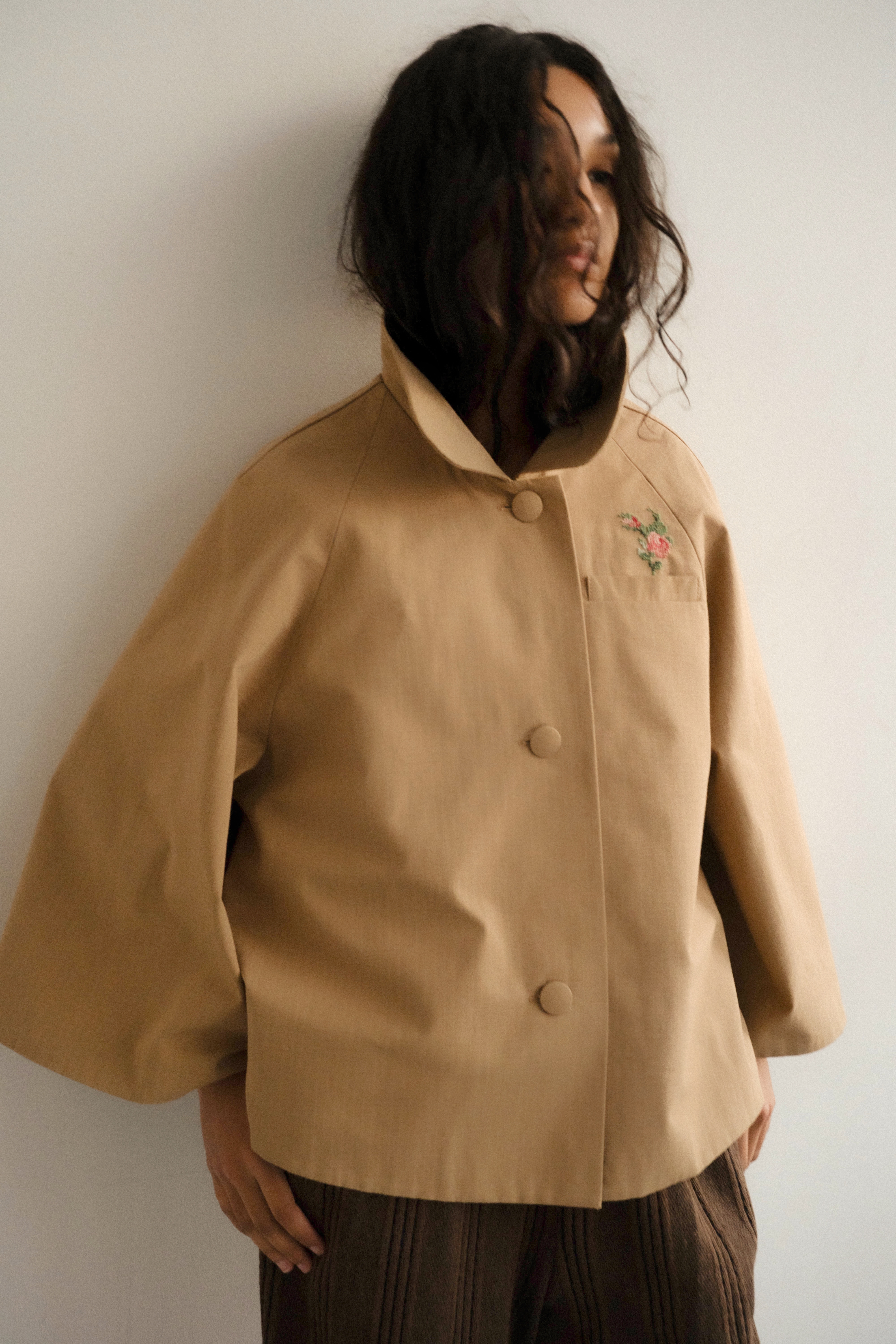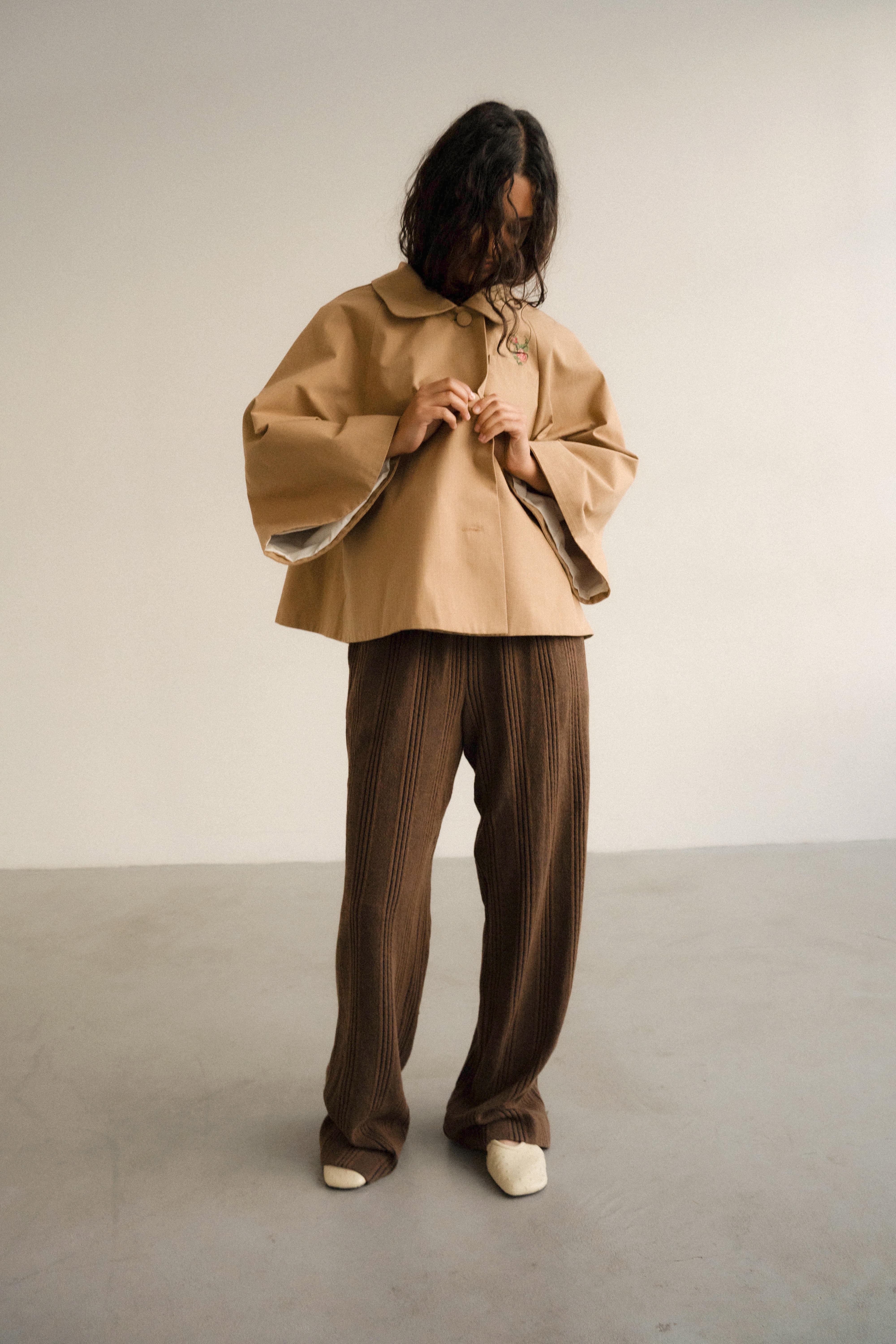 - Плащ с укороченным расклешенным рукавом свободного силуэта.