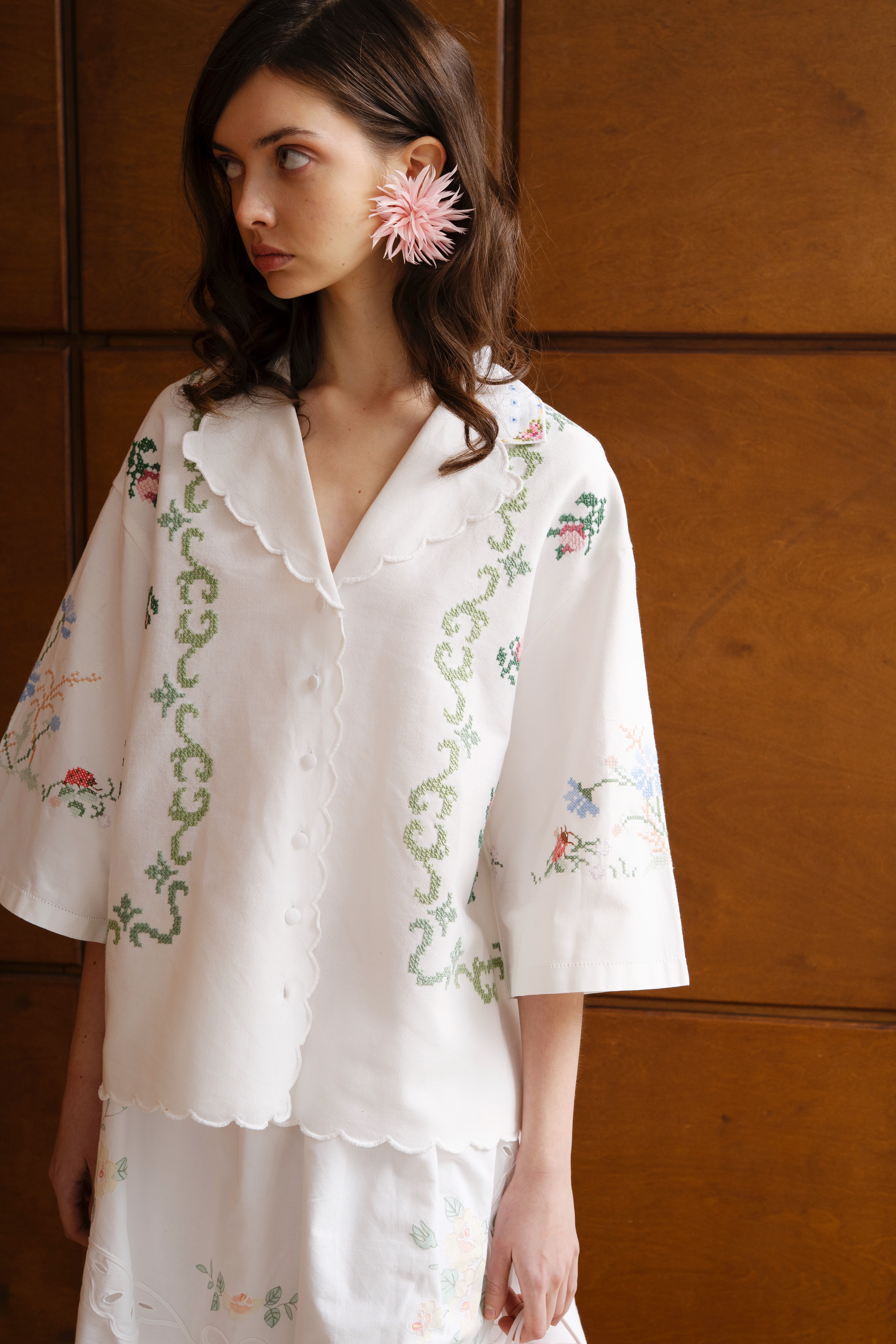 • Рубашка из плотного хлопка с вышивкой цветов и божьих коровок