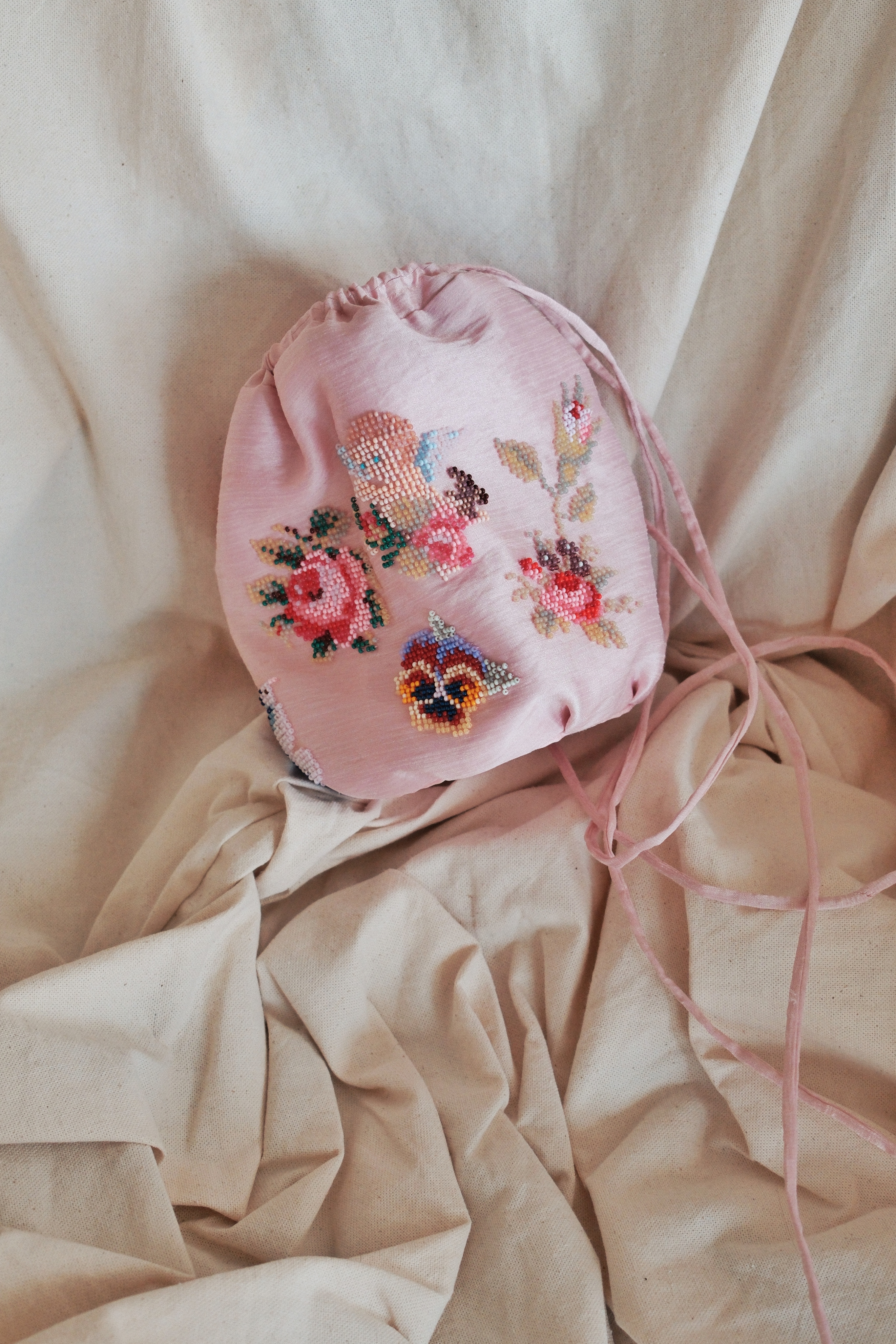 Шёлковый мешочек расшитый японским бисером.