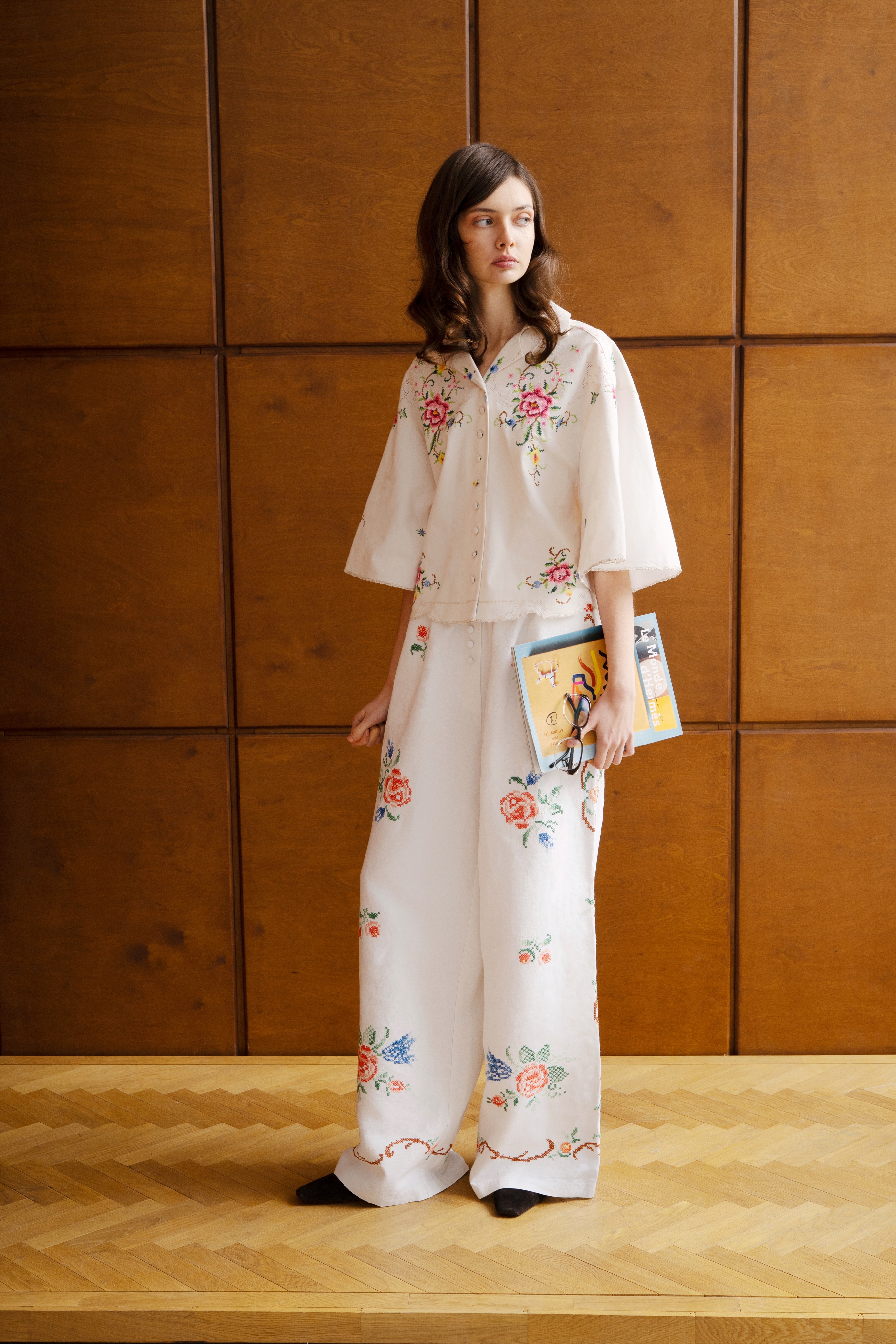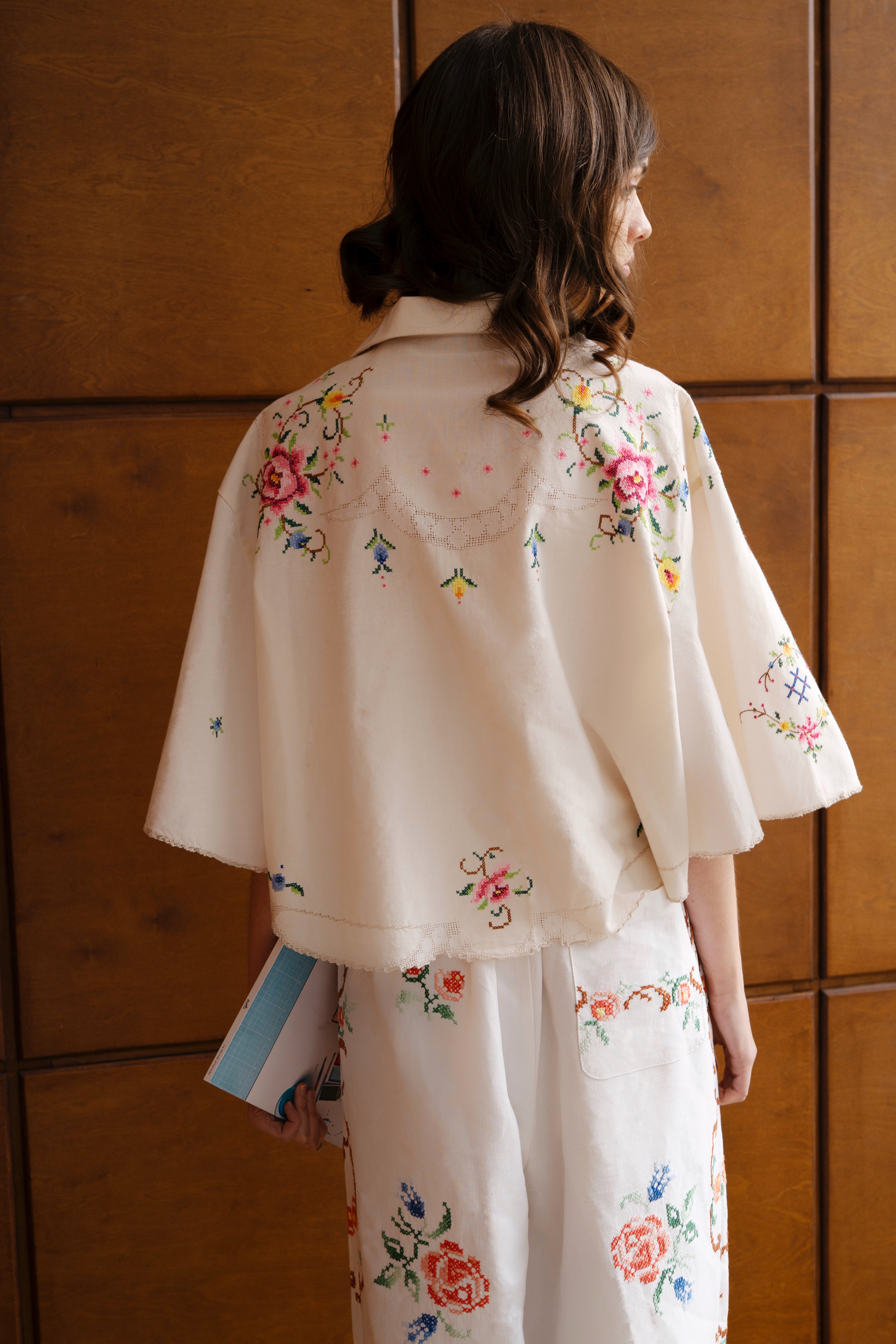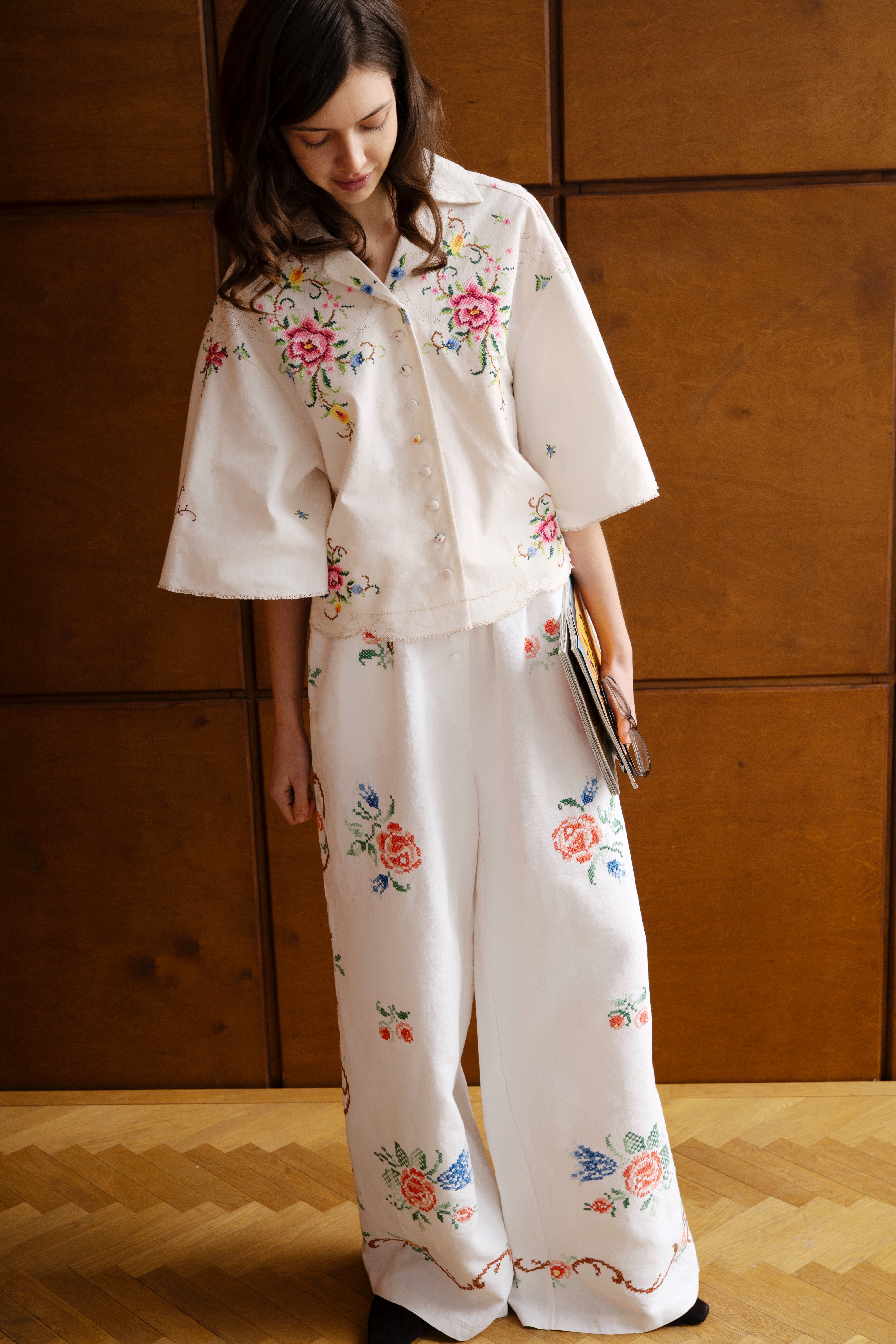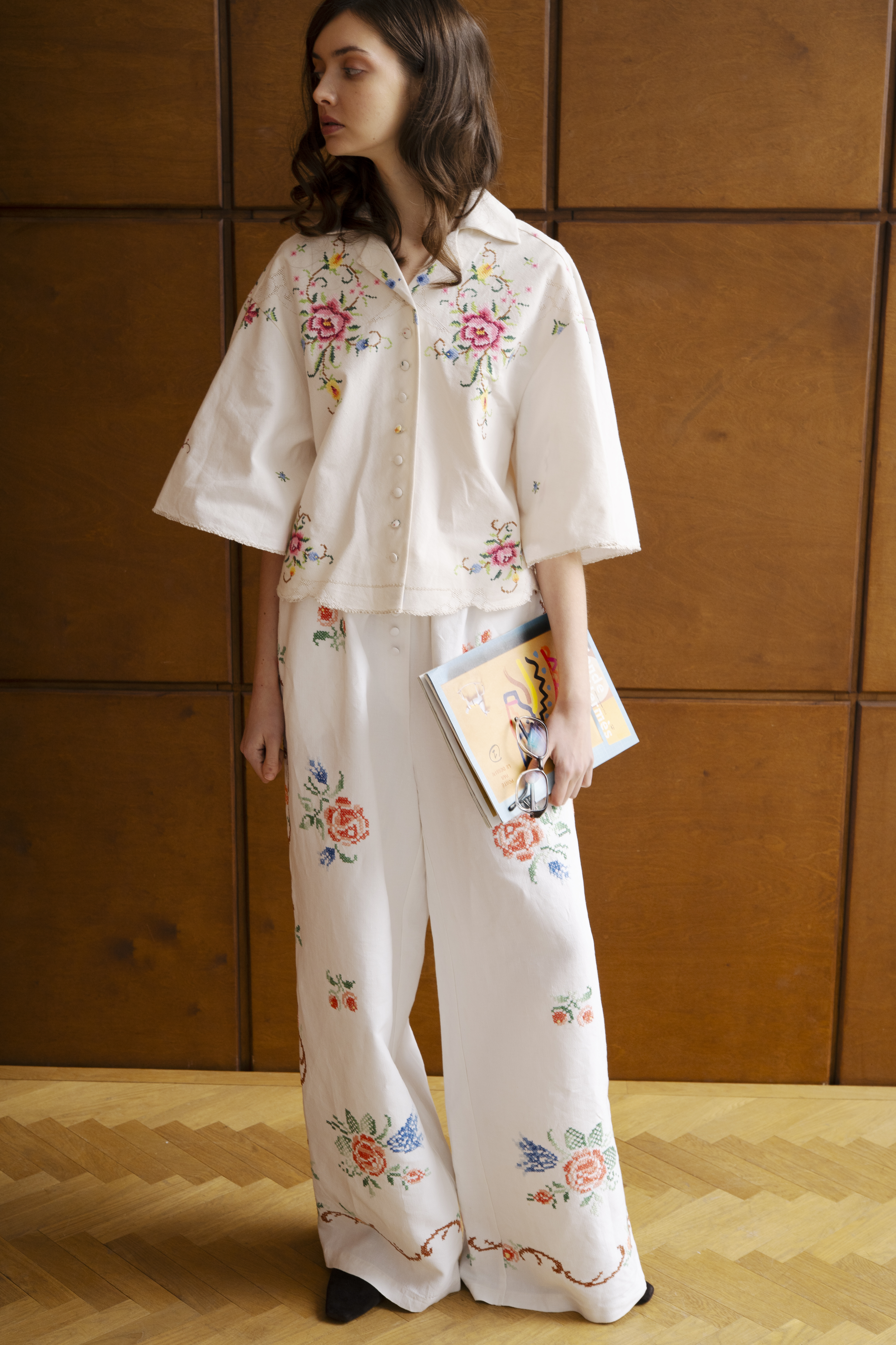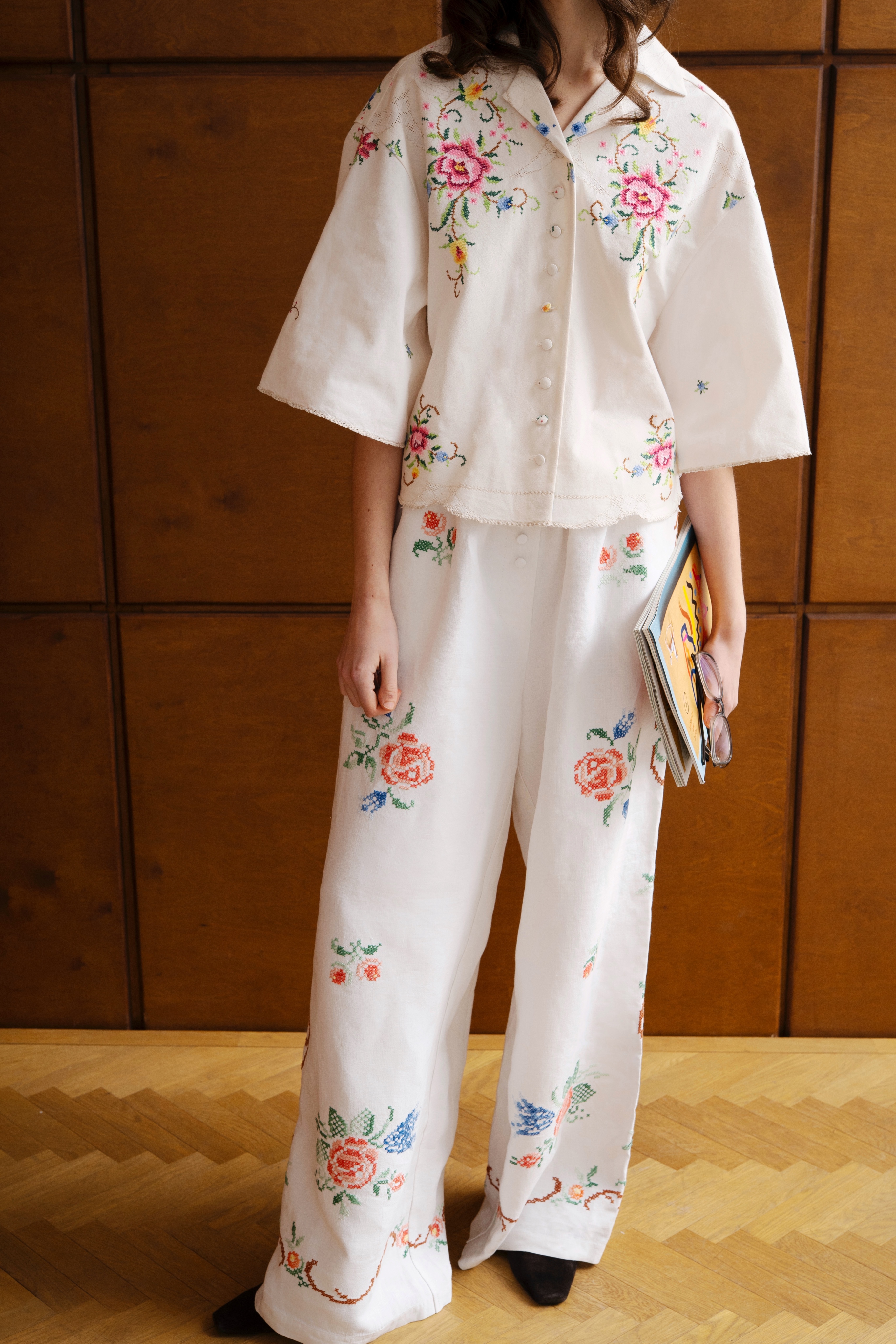 Укороченная рубашка с цветочной вышивкой