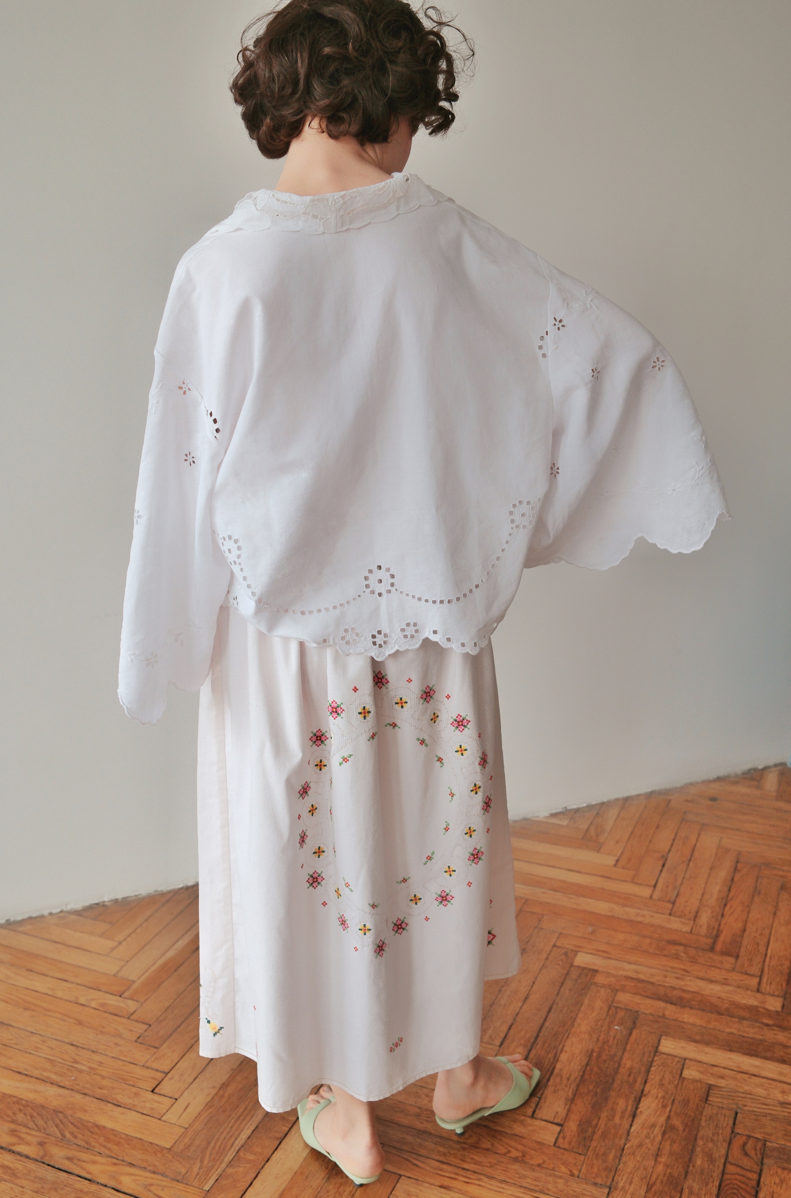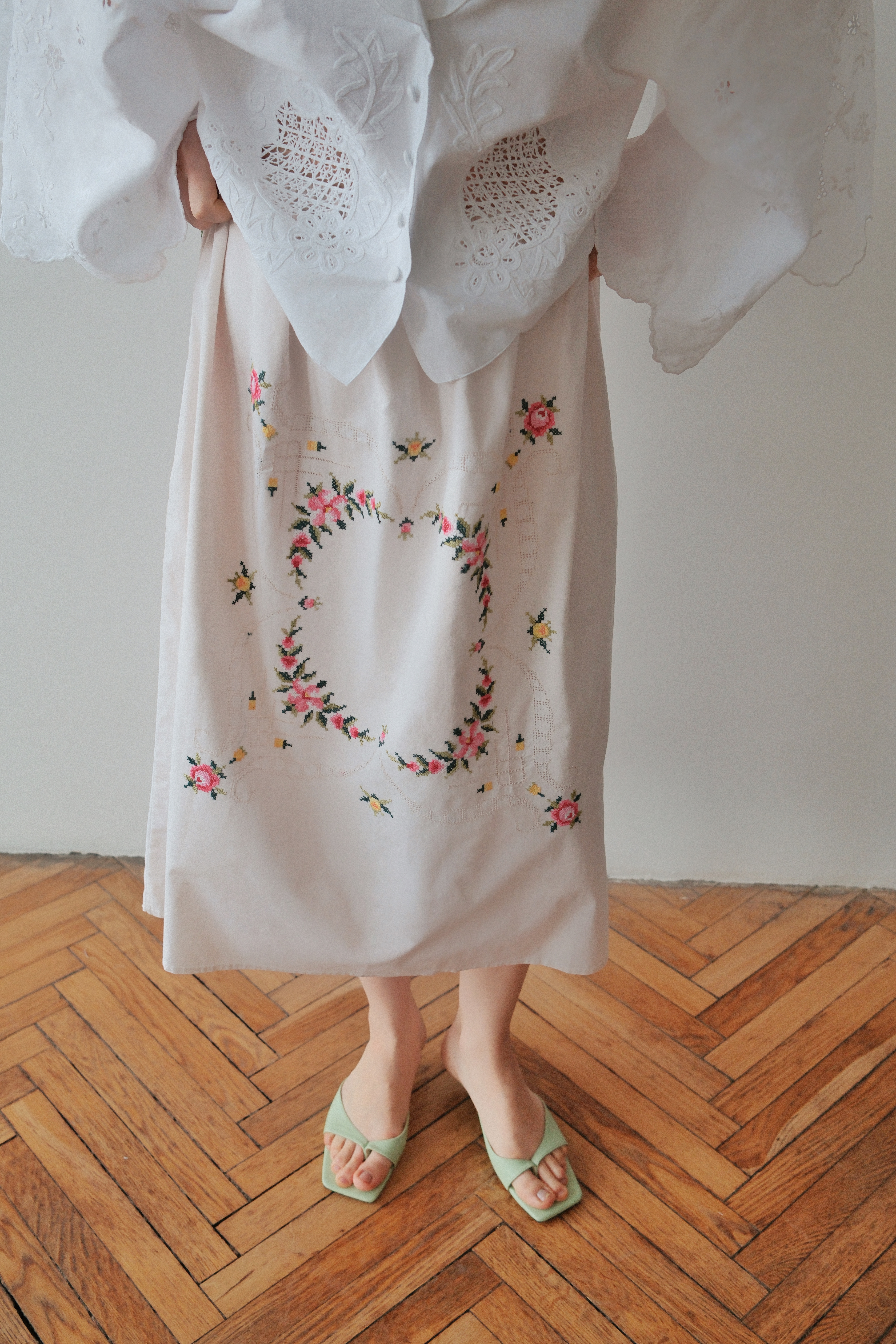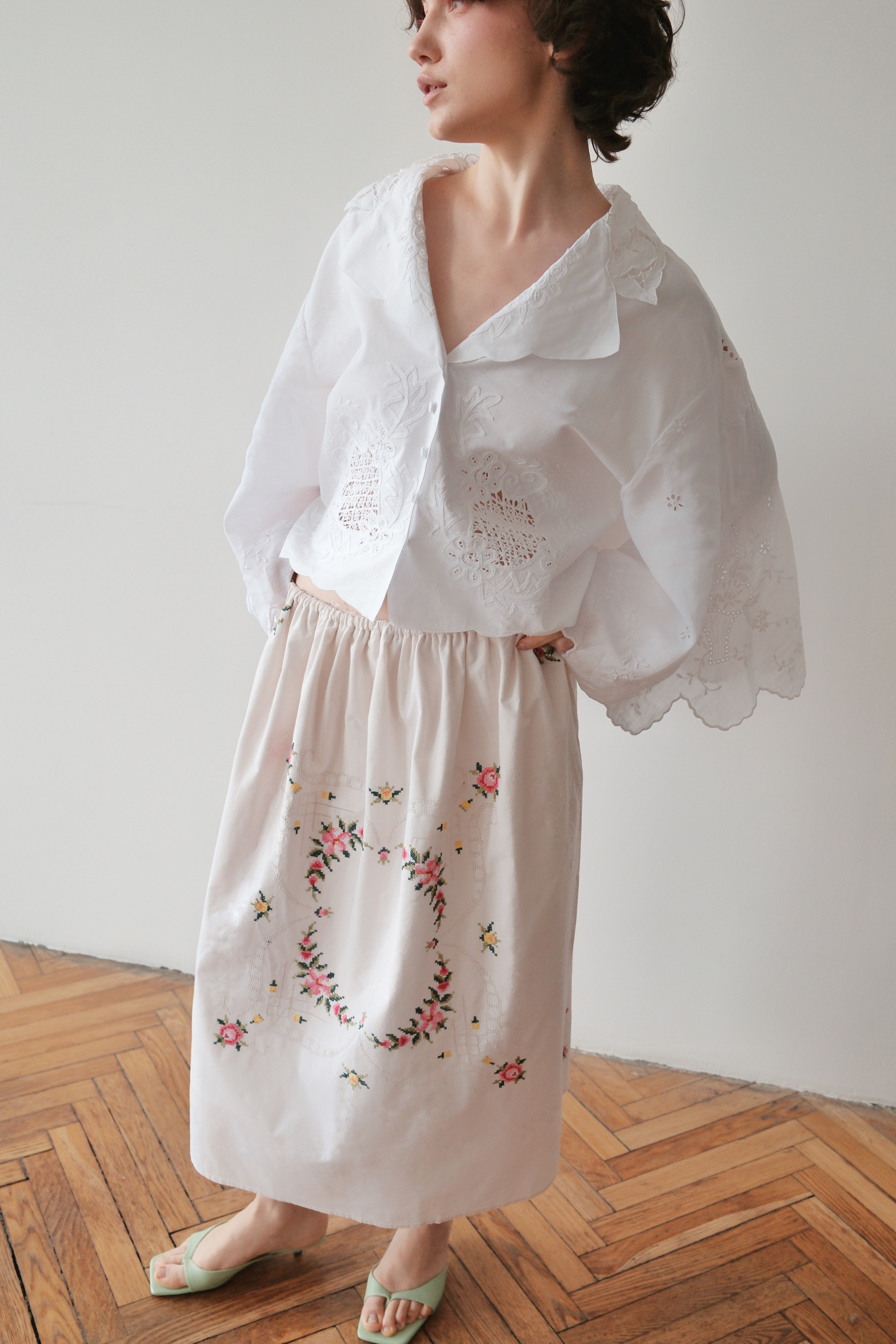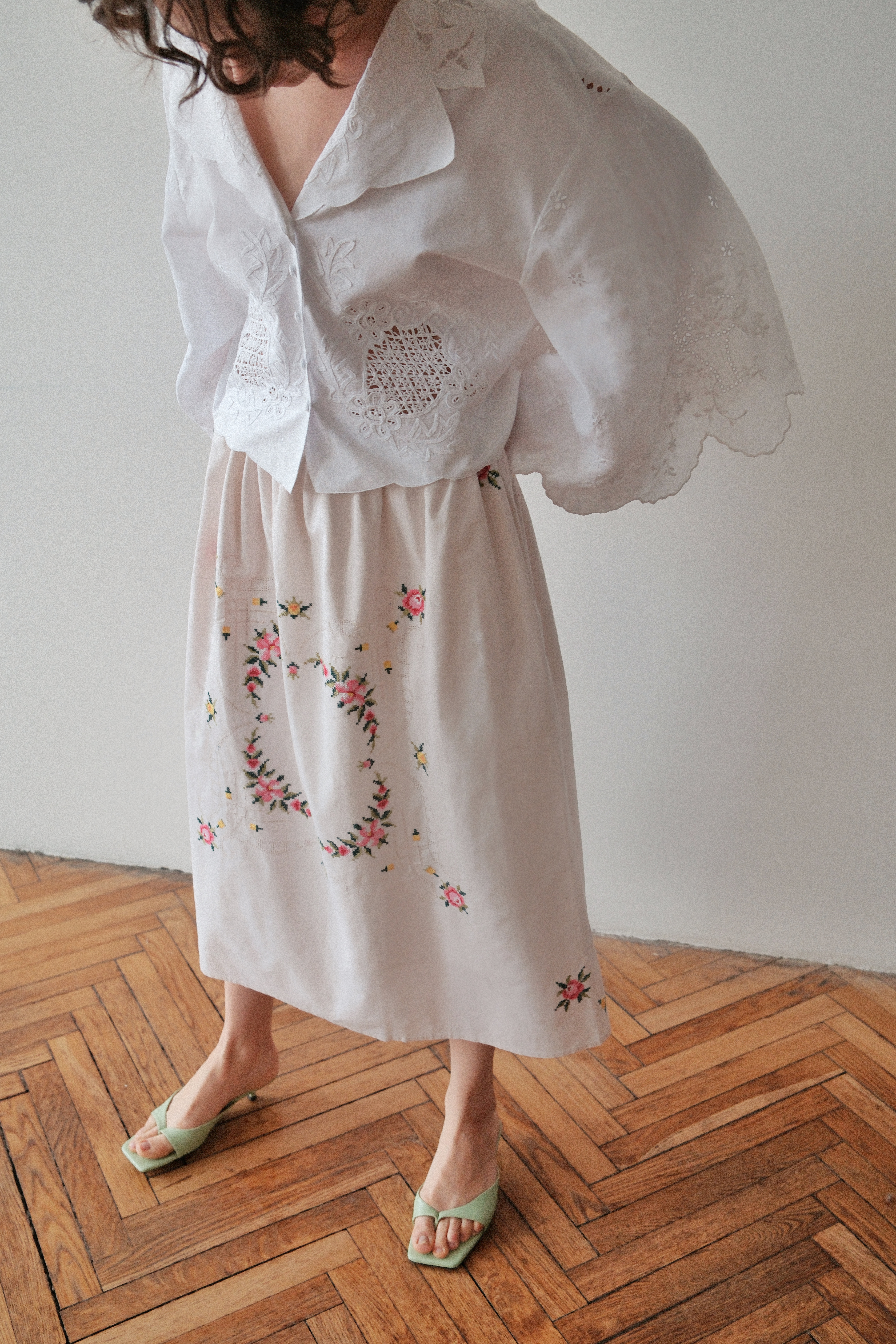 Свободная юбка на тонкой резинке с ручной вышивкой.