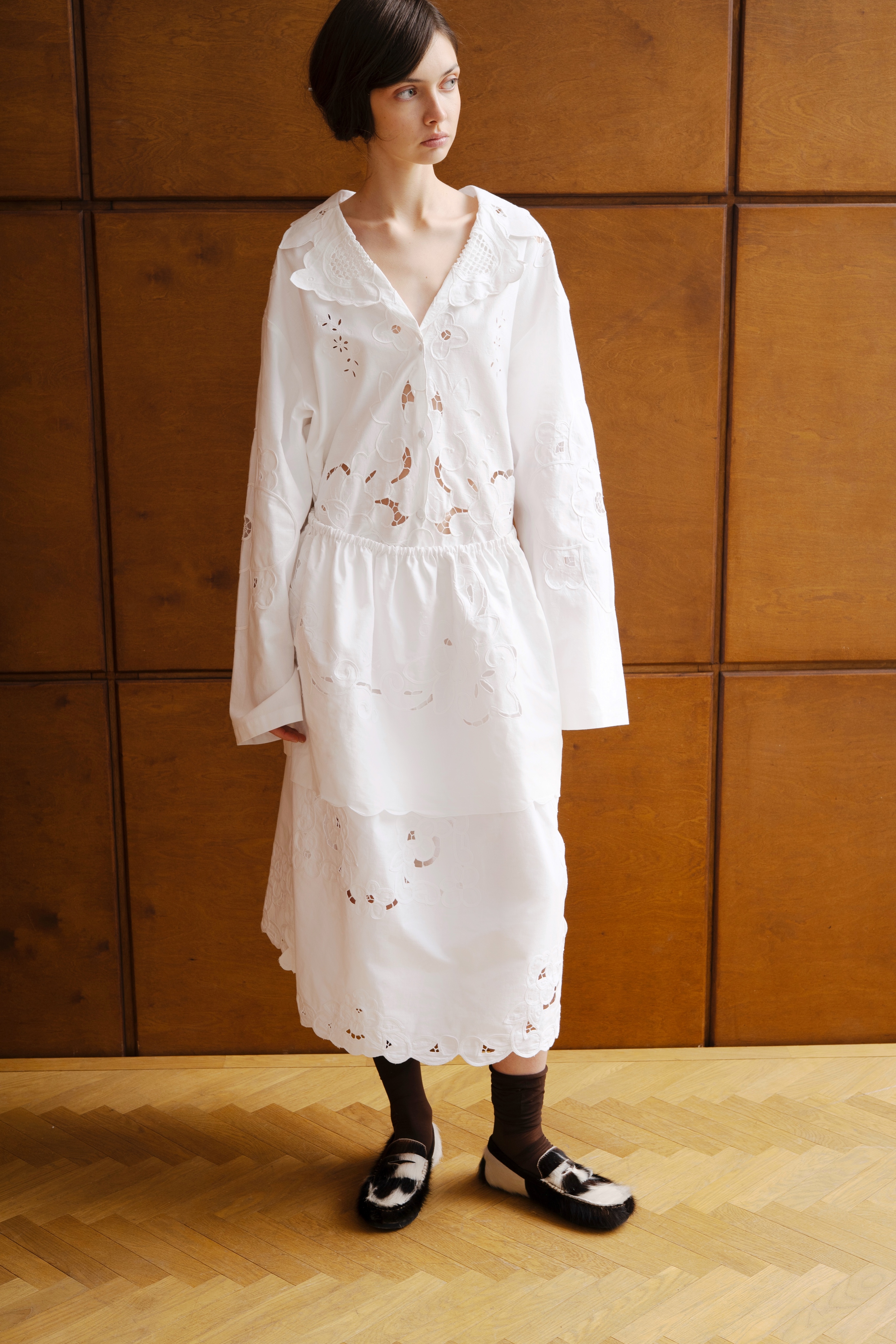 • Юбка в белом цвете с дополнительным подкладом из хлопкового батиста.